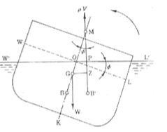 물체의 평형을 살펴보면 평형을 이해해야한다. 평형이란 정지하고 있는 물체, 가속이나 감속을 일으키지 않는 전체적인 힘의 균형을 말한다. 정적 평형 상태에 있는 어떤 물체가 외력을 받고 약간 이동했다가 외력이 없어질 때 처음 위치로 돌아가려 한다면 이 물체는 안정 평형상태에 있다고 한다. 이때, 처음 위치로 돌아가려는 경향을 복원성 또는 복원력(stability)이라 한다. 반대로 움직이는 원인인 힘을 제거해도 계속 운동을 하면 처음 상태는 불안정 평형상태에 있다고 말한다. 또한 평형상태에 있는 물체가 외력을 받고 움직일 때 그 힘을 제거해도 처음 위치로 돌아가지도 않으며 이동한 위치에 정지하고 있으면 이 물체의 처음 상태는 중립 평형의 상태라고 한다. 부체의 평형은 수직 상방향으로 작용하는 부력과 수직 하방향으로 작용하는 중력이 작용한다. 배가 바로 떠 있으려면, 두힘으 크기가 같고 방향은 반대이며 같은 수직선 상에서 작용해야 한다. 바로 떠 있던 배가 외력을 받고 경사지면 수면 아래의 형태에 변화가 일어나므로 수면 아래의 선체의 용적의 중심인 부심은 이동한다.