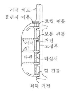 한 장이 두꺼운 강판으로 된 것. 타판에는 타심재 main piece, lower stock와 타암 rudder arm을 붙여서 타판을 보강. 구조 간단, 타의 면은 평판이지만 표면이 매끄럽지 않아서 와류 eddy가 발생하여 효 율이 떨어지므로 저속의 소형선에서 이용된다. 단판타의 구조로는 rudder head, 타심재 main piece, 타판 rudder plate, rudder pintle로 구성된다. 타심재 main piece, lower stock란 키의 강도를 보호 하는 것. rudder head에서 전달된 키의 비틀림 모멘트를 받고 키를 소요의 각도로 회전하는 축인 동시에 타판에 가해지는 수압에 의해 생기는 굽힘 모멘트를 받기 때문에 충분한 강도가 필요하다. rudder arm은 타심재에 적당한 간격으로 rudder arm이 붙여지고 여기에 키를 붙여 키를 만든다. 타심재와 함께 단조 또는 조조할 경우와 단조한 것을 타심재에 붙여 쓰는 경우가 있다. 러더암의 간격은 러더 핀틀마다 붙이는 경우가 일반적이고 때에 따라서는 러더 핀틀의 위치 및 그 중간에 붙이는 경우도 있다. 러더핀틀이란 러더 암은 타심재에서 전방으로 연장하여 러더 거전을 형성하고, 그것과 고정부의 거 전과를 관통하여 러더 핀틀을 삽입하며, 키를 고정부에 연결하는 것. 키의 회전축이라 할 수 있다. 단강제로 상부는 서서히 taper를 주어서 頂部nut로 러더 암에 고착시킨다. 고정부의 거전에 들어갈 핀틀은 원통형으로 마모 방지 위해 whit metal이나 황동 bush를 끼운다.