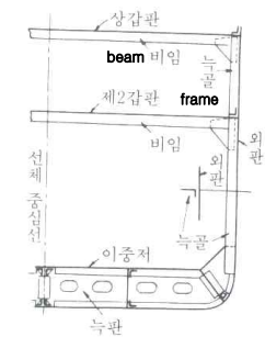 • 늑골, 늑판, beam늑판 : 선저 외판에 붙는 골재