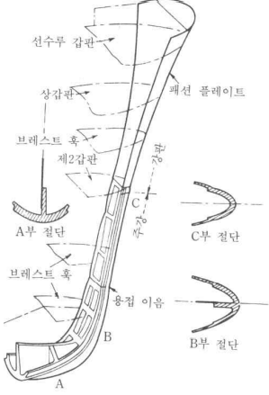 이 강판을 fashion plate라 하는데, 위로 갈수록 곡률 반지름이 커지고 두께는 배의 길이에 비례하여 두꺼워진다. 이 강판재의 선수재를 fashion plate stem이라 한다. 이들 강판제 선수재는 갑판 면적을 증기시킴과 동시에 선수부 외판의 flare와 조화를 이루어 겉모양이 좋으며, 또 배가 충돌할 경우에 방형 선수재에 비하여 손상이 적고 수리하기도 쉽다.