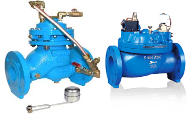 - 기 능: Main Valve에 Solenoid Pilot을 설치하여 Main Valve의 열고 닫음을 원격 조정 가능한 것도 있으며 별도의 전원이 필요 없이 수위에 따라 자동 제어가 될 수도 있다